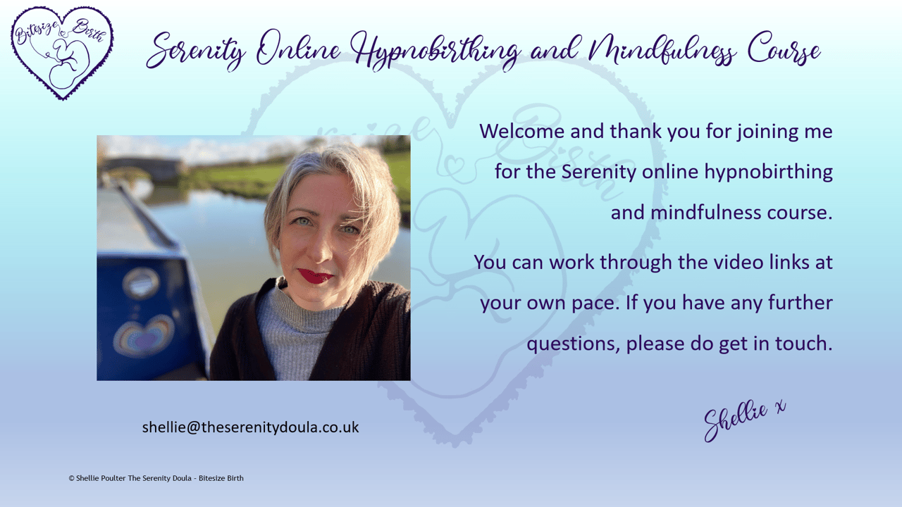 Access to downloadable relaxation tracks and other resources from www.theserenitydoula.co.uk
